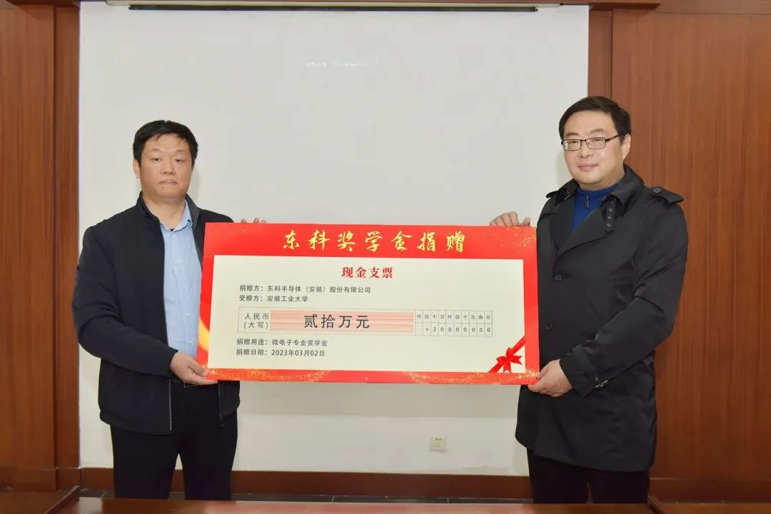 2023年3月8日下午,東科半導體(安徽)股份有限公司和安徽工業大學共建聯合實驗室揭牌儀式暨東科專業獎學金捐贈儀式在安工大佳山校區隆重舉行。